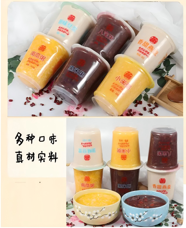 | 广泛产品适用性 | 除八宝粥外,亦适用于奶茶、果汁、纯净水、酸奶、果冻等多种杯装液体及半流体食品的包装。 |